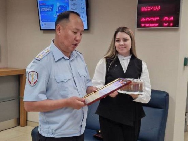 Врио начальника управления МВД России по Улан-Удэ Сергей Эрдынеев вручил благодарность Марине Грудининой – заместителю начальника отдела продаж и обслуживания физических лиц одного из банков города. Девушка уберегла 64-летнюю жительницу столицы Бурятии от потери крупной суммы.