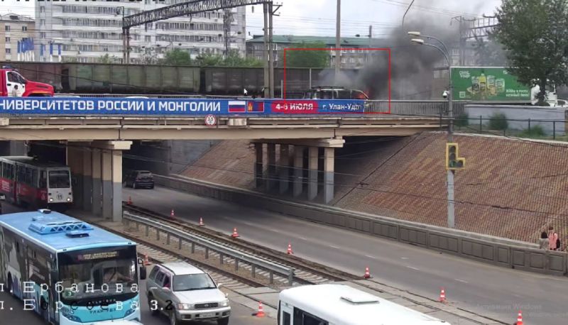 На путепроводе на улице Борсоева в Улан-Удэ в направлении улицы Куйбышева произошло возгорание автомобиля.