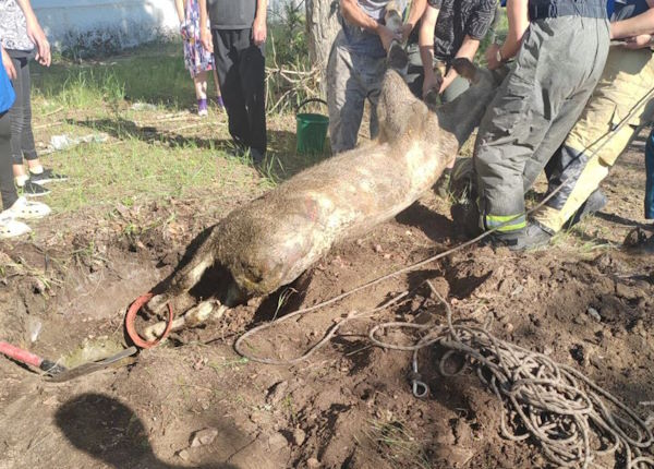 Вечером 11 июля в пожарно-спасательную часть №16 города Балей поступил необычный вызов – в заброшенный канализационный люк, забитый мусором, провалился телёнок.