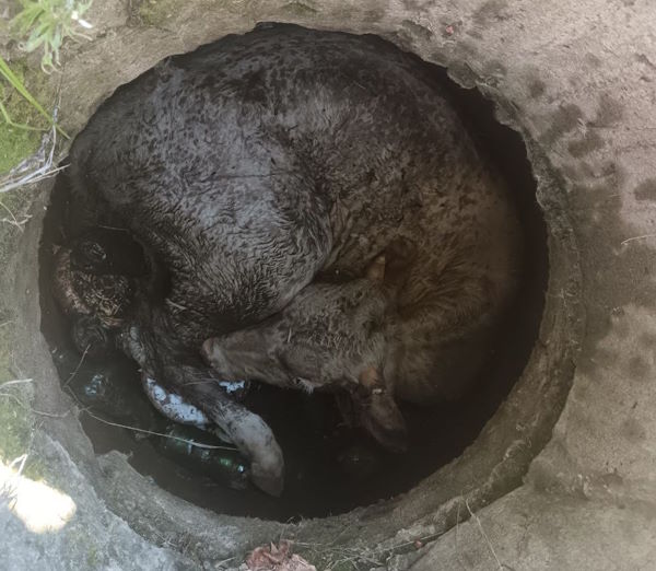 Добраться до животного оказалось не так просто – над землёй возвышалось ещё и бетонное кольцо высотой около полуметра, что осложняло доступ к пострадавшему. Сам же телёнок, судя по всему, находился там уже довольно продолжительное время и ему повезло, что его заметили неравнодушные горожане.