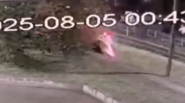 На записи видно, как автомобиль, вылетевший с дороги, врезается в столб и переворачивается на бок.