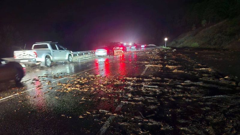 К полуночи стало известно, что реверсивное движение сняли. Всю проезжую часть очистили от камней, грязи и воды.
