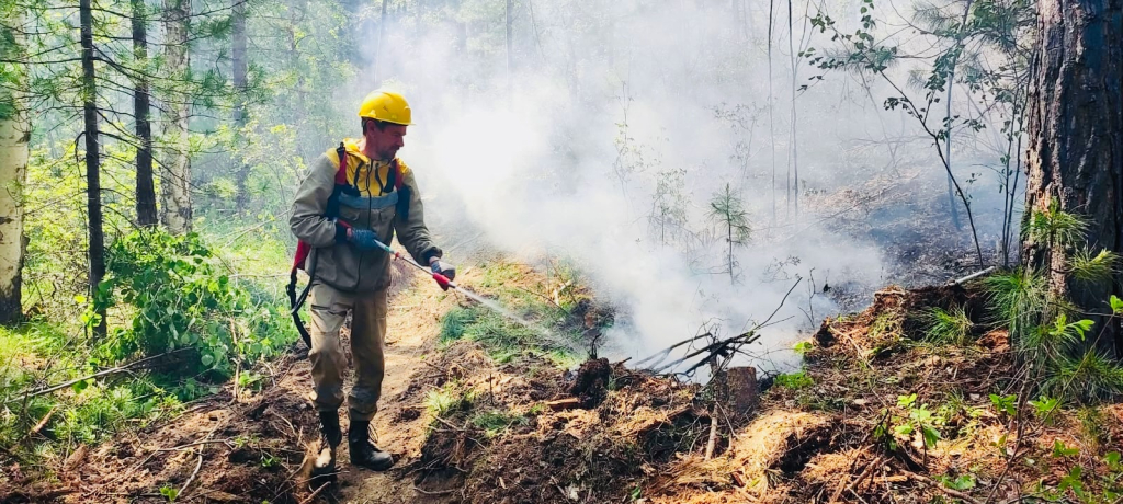 На тушении работают 32 человека. Сотрудники наземных лесных служб – лесной охраны и аваиалесоохраны. Задействовано 6 единиц специализированной техники.