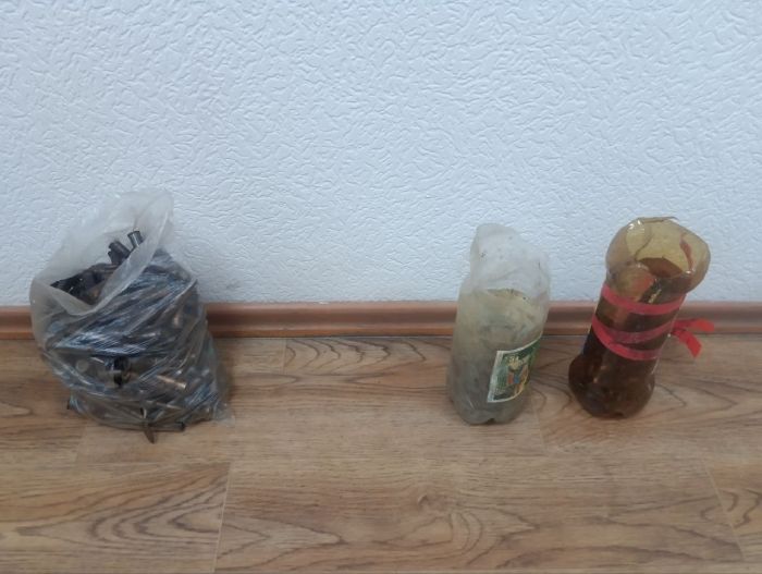 В какой-то момент женщина увидела металлический предмет, торчащий из земли. Когда она его откапывала, обнаружила пластиковую бутылку с патронами. При дальнейшем раскапывании земли женщина нашла ещё три пластиковые бутылки, наполненные патронами, и два огнестрельных ружья, завёрнутых в пакеты и обмотанных изолентой.
