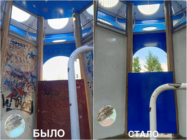 В сквере на улице Розы Люксембург неизвестные сломали крепления гамака. В Курсантском сквере, парке семейного отдыха в Солнечном, Каштаковской роще, сквере «Куб», парке «Приморский» оторвали цепи качелей и элементы креплений верёвочных городков, в последнем также сломали тренажёр. На озеленённой территории на бульваре Рябикова исписали тегами деревянную ракету.