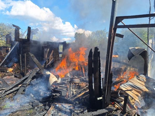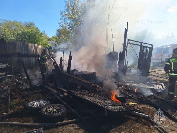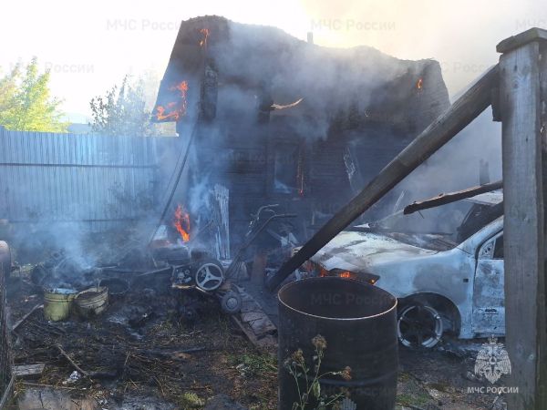 В результате пожара уничтожены хозпостройка и автомобиль, в котором произошло возгорание, повреждены баня и второй автомобиль.