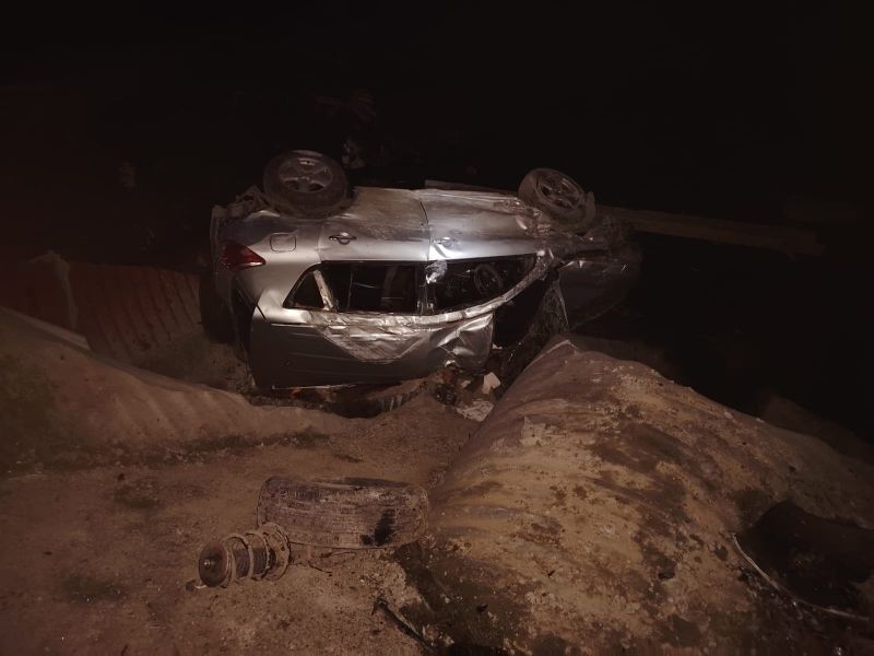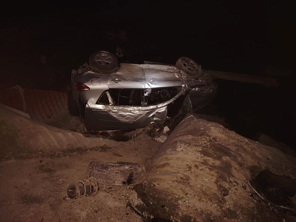 Вылетевший с дороги кроссовер перевернулся на крышу.