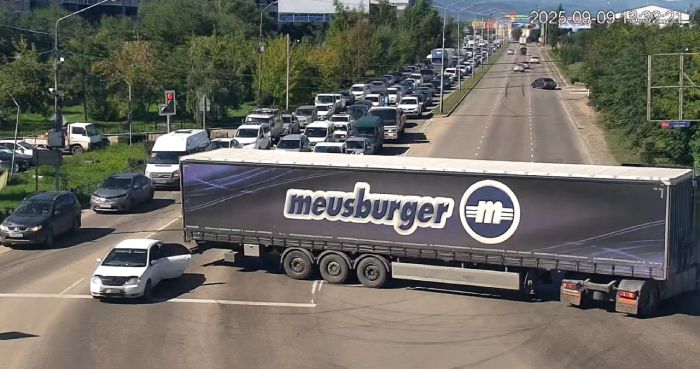 В итоге фура перекрыла дорогу, из-за чего возникла сильная пробка. «Встало» движение в сторону Левого берега.