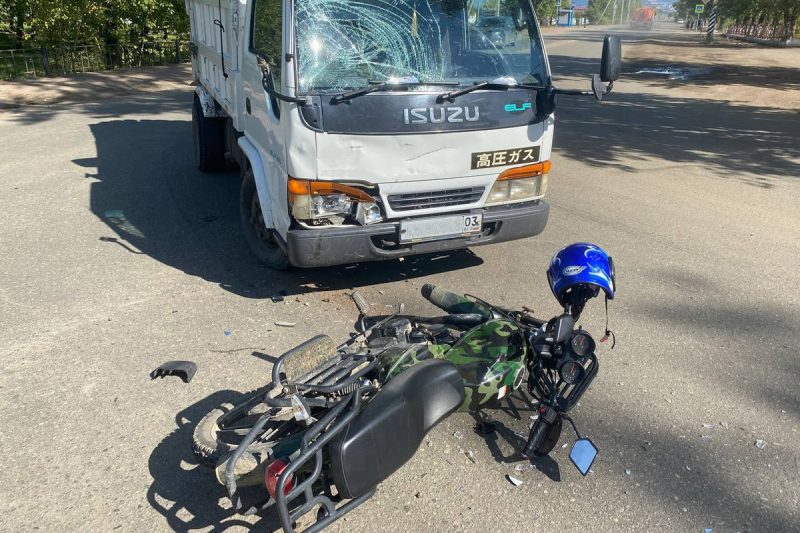 Всё произошло около 13 часов на улице Стартовая. Водитель грузового автомобиля Isuzu Elf при повороте налево не предоставил преимущество в движении мопеду Alpha Forester и столкнулся с ним.
