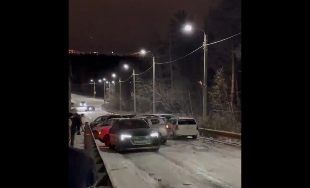 Там утром на указанном участке улицы из-за гололёда столкнулись сразу восемь машин - они катились по дороге друг на друга, как на катке. По предварительным данным, в результате столкновения никто из участников дорожного движения не пострадал, сообщили в Госавтоинспекции Иркутской области.