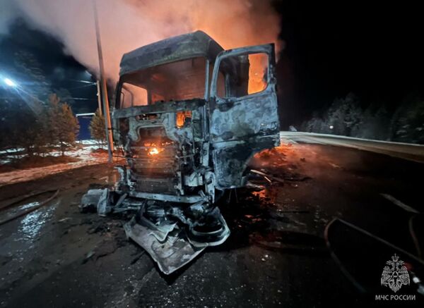 Утром 13 ноября в Тайшетском районе Иркутской области на федеральной трассе «Сибирь» загорелась фура.