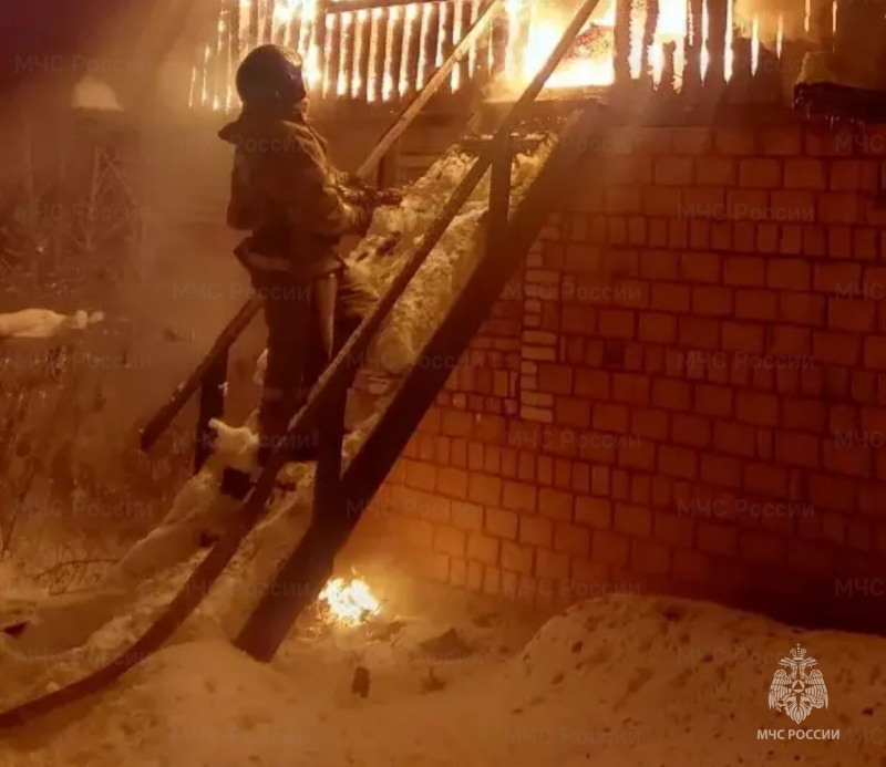 На момент прибытия первого подразделения происходило горение пола и стен, наблюдалось плотное задымление внутри дома.