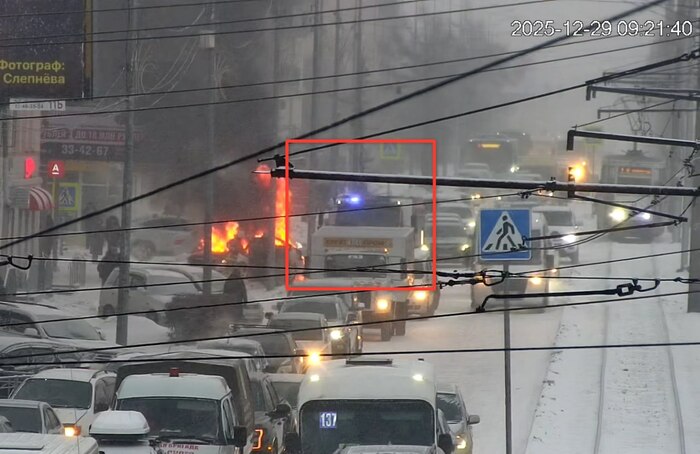 Сейчас на месте работают пожарные. Как сообщили в комитете по транспорту, в связи с работой пожарной службы ограничено движение по правой полосе улицы Терешковой в направлении остановки «Геологическая».