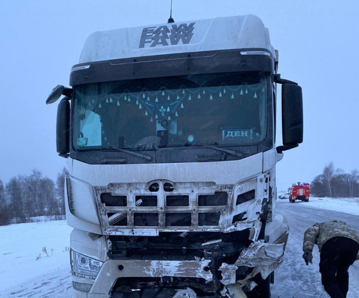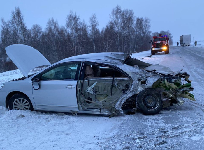 По предварительным данным, перед селом Таловка водитель автомобиля «Тойота Премио» выехал на полосу встречного движения и врезался в фуру FAW