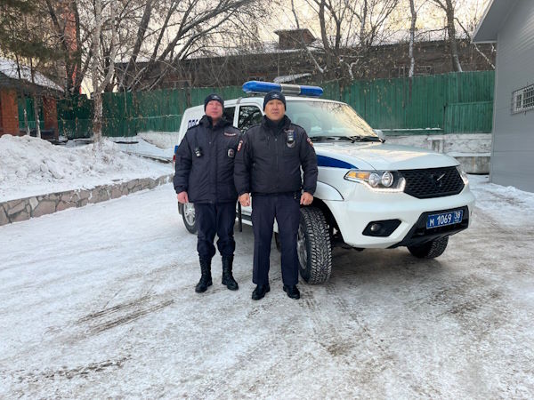 Помощь оказали старший лейтенант полиции Василий Баторов, инспектор 2 мобильного взвода 2 роты ОБППСП, и прапорщик полиции Денис Давыдов, командир отделения 2 мобильного взвода 2 роты ОБППСП МУ МВД России «Иркутское», сообщили в пресс-службе ГУ МВД по Иркутской области.