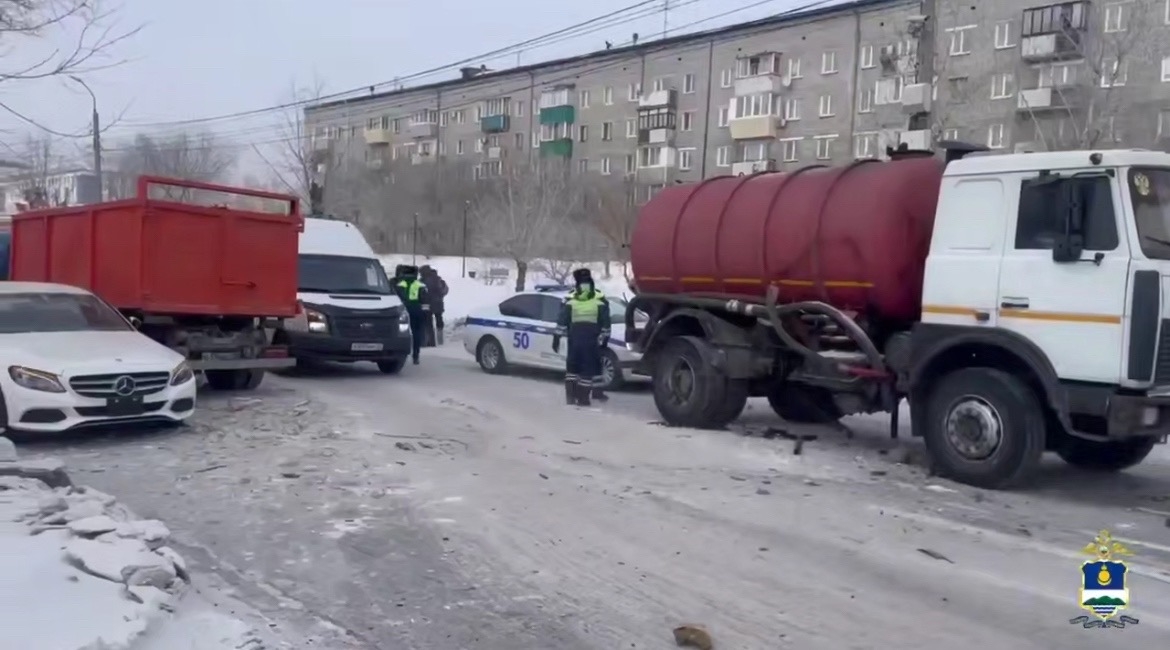 По предварительным данным, днём на улице Революции 1905 года произошло столкновение автомобилей «МАЗ», «Мерседес» и «Исудзу».