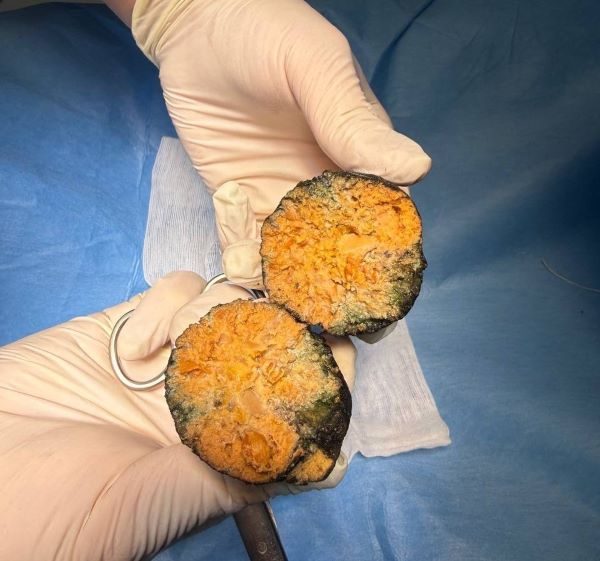 – Операционной бригаде пришлось выполнить разрез передней брюшной стенки, разрез желудка и механически извлечь фитобезоар, который достиг в размере уже 11х6 см, – рассказали в больнице.