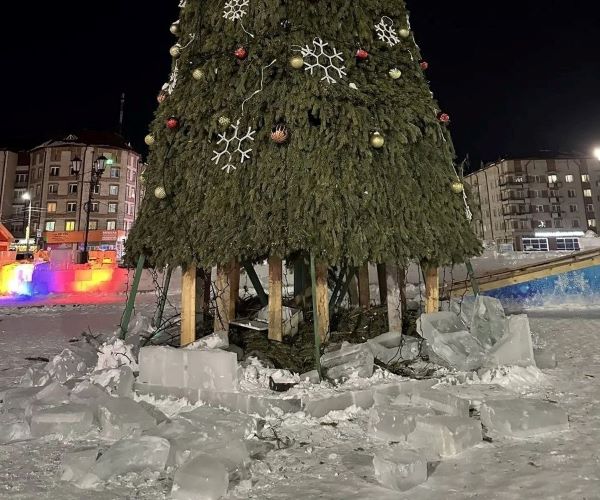 – Разбросанные ледяные блоки, разрушенные элементы ледового оформления и повреждённая территория у главной ёлки. То, что делали для всех - для семейных прогулок, детских фото и праздничного настроения, за считанные минуты превратили в груду льда и мусора, – рассказали в городской администрации.