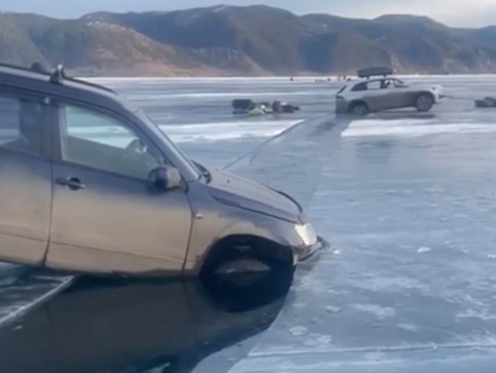 В Иркутской области, на льду Байкала в районе посёлка Большое Голоустное случилось очередное происшествие. Машина провалилась и застряла в трещине озера. Об этом сообщили в местном паблике «Рыбалка в Сибири на Байкале».