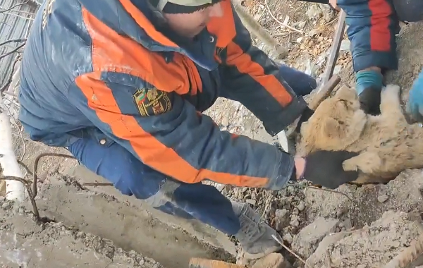 Женщина тут же вызвала спасателей. На помощь пришли сотрудники поисково-спасательной службы ГУ «Забайкалпожспас». Они разрушили плиту гидравлическим аварийно-спасательным инструментом и бережно вытащили пёсика из ловушки.