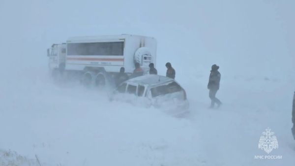 Тем временем, спасатели МЧС России продолжают оказывать помощь гражданам в снежном заторе на федеральной трассе.