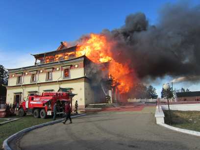 Вечером 27-го апреля в 20.45 поступило сообщение о том, что горит здание дацана в посёлке Амитхаша Агинского района