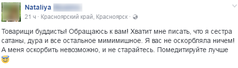 Впрочем, сейчас на её странице оскорблений со стороны буддистов не наблюдается.