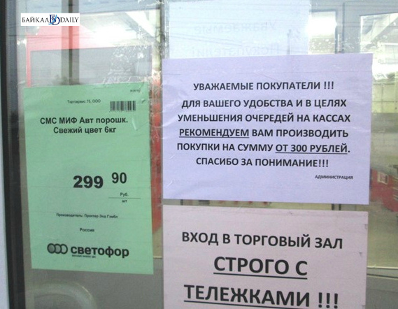 Как сообщал «Байкал-Daily», осенью прошлого года улан-удэнцы столкнулись в магазинах «Светофор» с принуждением совершать покупку на сумму не менее 300 рублей. В противном случае на кассе покупателей не обслуживали. Доходило до абсурда, что незнакомые людям объединяли свои покупки.
