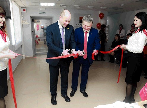 В заключение торжественной части мэр города Александр Голков и Александр Бардалеев объявили об открытии офиса, перерезав символическую красную ленту.