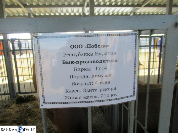 Самыми крупными из рогатых здесь стали быки-производители породы «лимузин». Их разводят в Бичурском районе Бурятии. Вес самого большого быка, представленного на выставке, 910 кг. Выгода их выращивания состоит в том, что они дают 70% мяса, обычная же бурёнка не более 50. Также такие коровы сами добывают себе еду зимой.