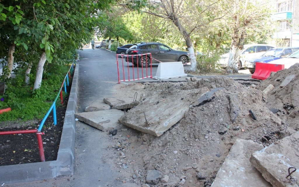Ремонт во дворе этого дома начался в мае. Здесь заменили бордюры и вместо старого асфальта положили новый. «Но тут «ТГК-14» неожиданно решило отреагировать на более чем двухлетние запросы и жалобы местной управляющей организации на расположенный рядом с домом «парящий» колодец тепловой камеры и провести капитальный ремонт теплотрассы», - рассказывают в комитете городского хозяйства.