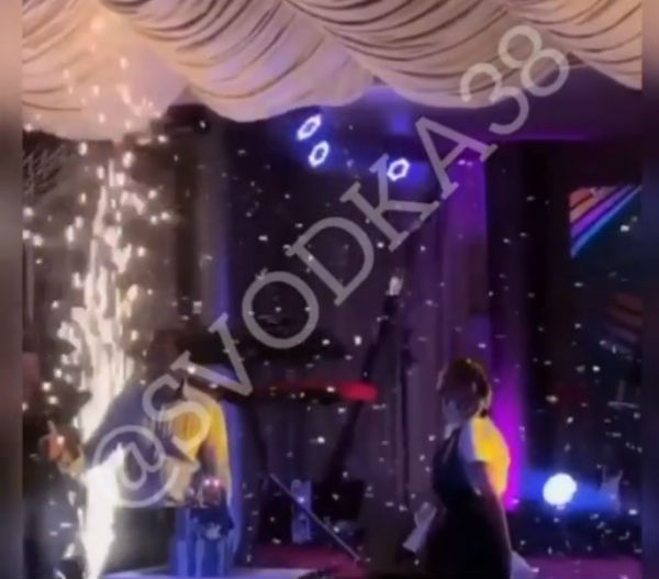 Сообщается, что гостей ресторана развлекали холодным пиротехническим фонтаном.