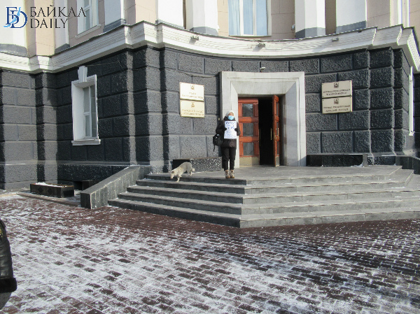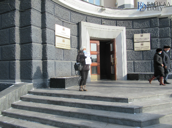 На третий день одиночный пикет всё же состоялся. Виктория владеет помещениями в КТК «Galaxy». С плакатом она встала у дверей Народного Хурала.
