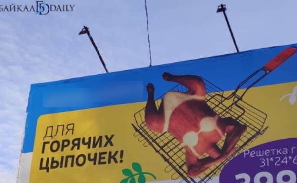 Жители Бурятии возмущены неоднозначной рекламой решёток-гриль улан-удэнского хозяйственного магазина. На баннере изображена курица-гриль, «наряженная» в женское нижнее бельё.