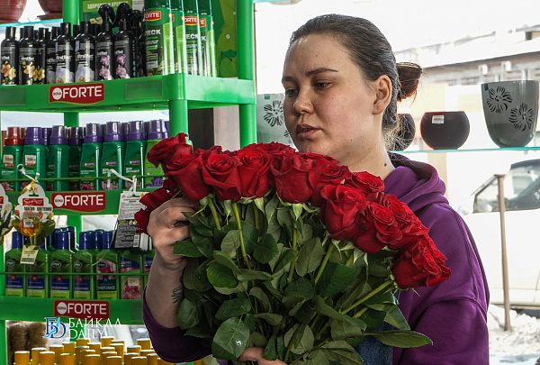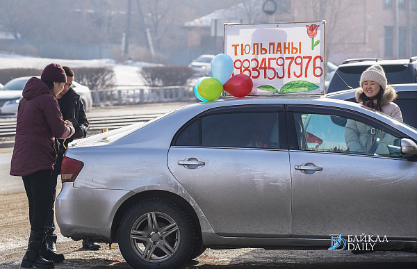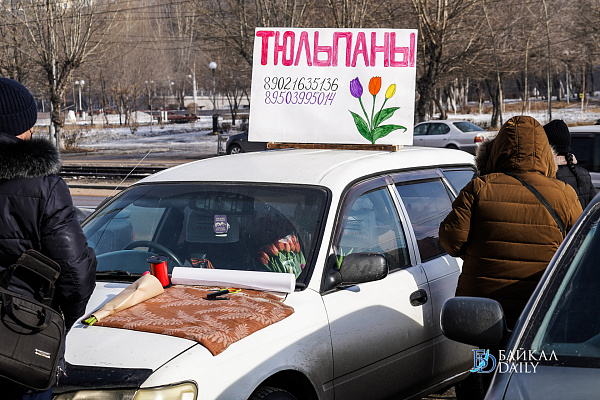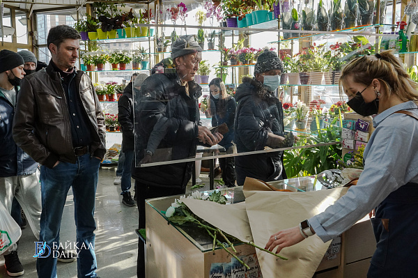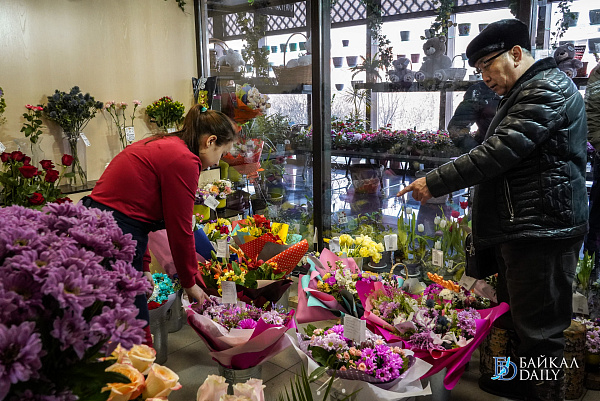 В Международный женский день многие улан-удэнцы не стали отказываться от традиции дарить цветы. По словам очевидцев, в цветочных магазинах очереди примерно такие же, как и в прошлые годы. Много покупателей-мужчин самых разных возрастов.
