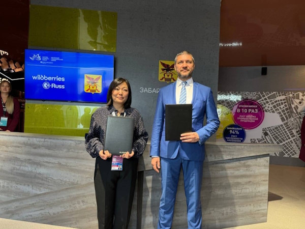 Губернатор Забайкальского края Александр Осипов и глава объединённой компании ООО «РВБ», основатель Wildberries Татьяна Бакальчук на Восточном экономическом форуме (16+) 5 сентября подписали соглашение о сотрудничестве. Оно предполагает развитие транспортно-логистического обеспечения Забайкальского края, реализацию инвестиционного проекта по строительству складского комплекса в Чите.
