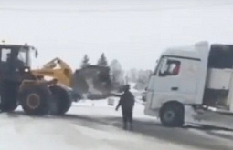 В Иркутской области сотрудники ГИБДД вызволили фуру из кювета
